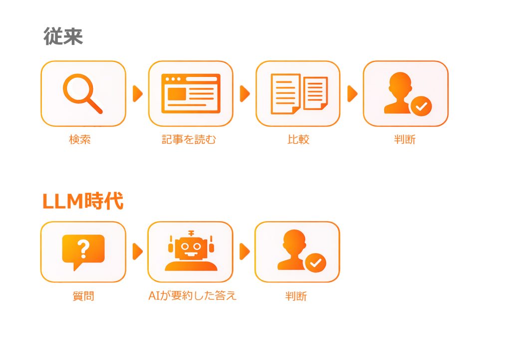 その結果、検索行動はこれまでのように「Webサイトへ遷移する入口」ではなく、意思決定が完了する場所へと変わりつつあります。