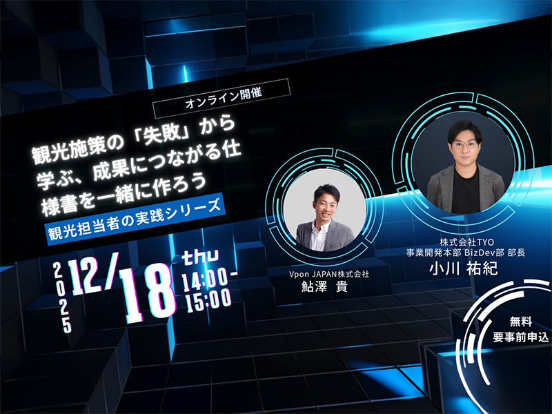 アジアビッグデータカンパニー Vpon JAPAN株式会社(本社:東京都新宿区、代表取締役社長:篠原 好孝、以下Vpon JAPAN)は、株式会社 Kdan Japan(本社:東京都千代田区、代表:ケニー・スー、以下 Kdan Japan )主催のアフターコロナの観光を見据えた「観光DXウェビナー」に登壇いたします。
