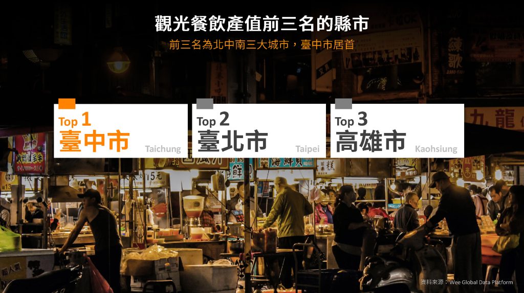 根據Wee Global Data Platform 統計,2022年台灣觀光業產值總額超過新台幣6千億元,零售、住宿、餐飲業三個產業全數成長,並以餐飲業成長幅度最亮眼,顯示飲食是旅客在國內旅遊規劃中最受重視的項目。