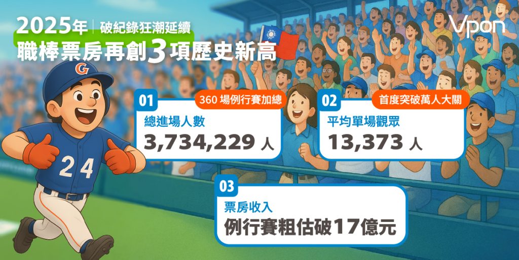 如果說 2024 是破圈元年,那麼 2025 就是「破圈加速年」。在 12 強世界冠軍效應與大巨蛋持續發酵下,職棒票房再創三項歷史新高: