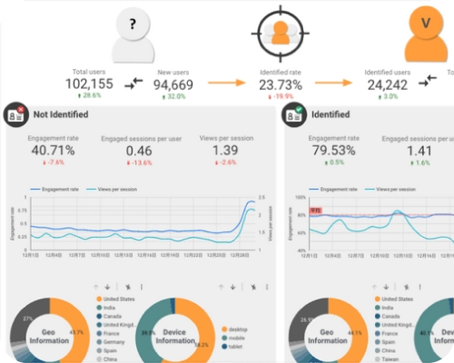 快速掌握網站和 APP 顧客滲透率、挖掘陌生訪客成為顧客的關鍵路徑、以及使用忠誠會員分析和進階行為模組提升會員經營成果。